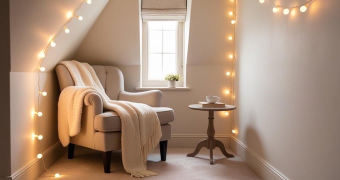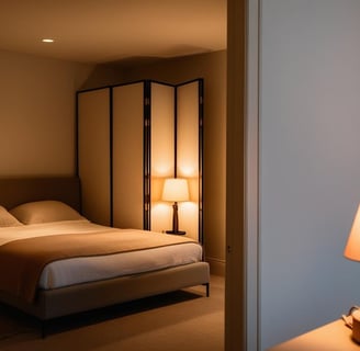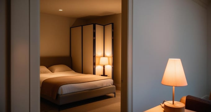 Lighting changes everything — soft light by the bed, brighter light at your desk