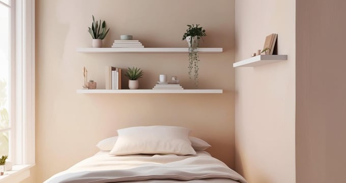 When you can’t spread out, go up! Space-saving bedroom ideas always include smart wall storage.